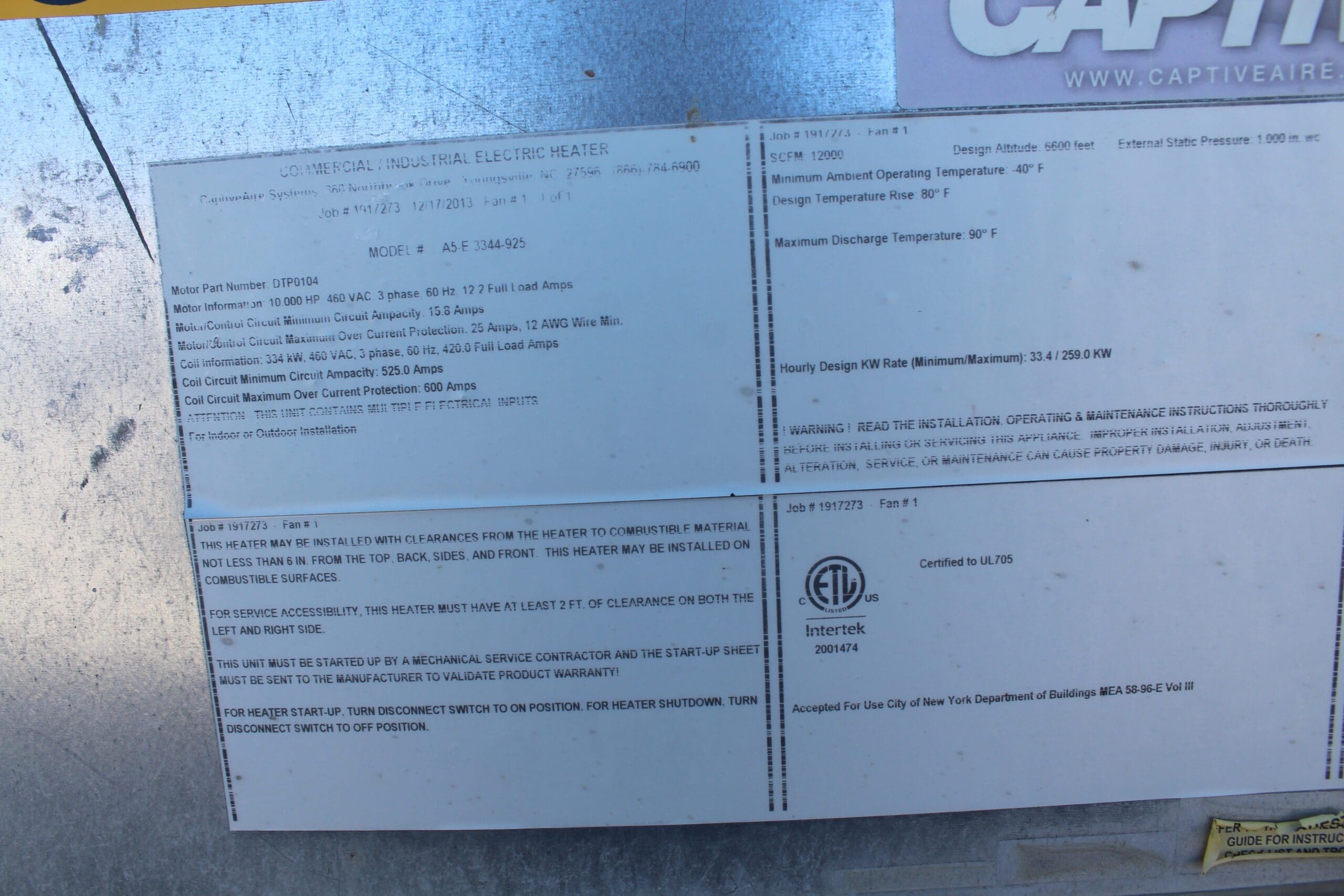 | Design Temperature Rise | 80° F |