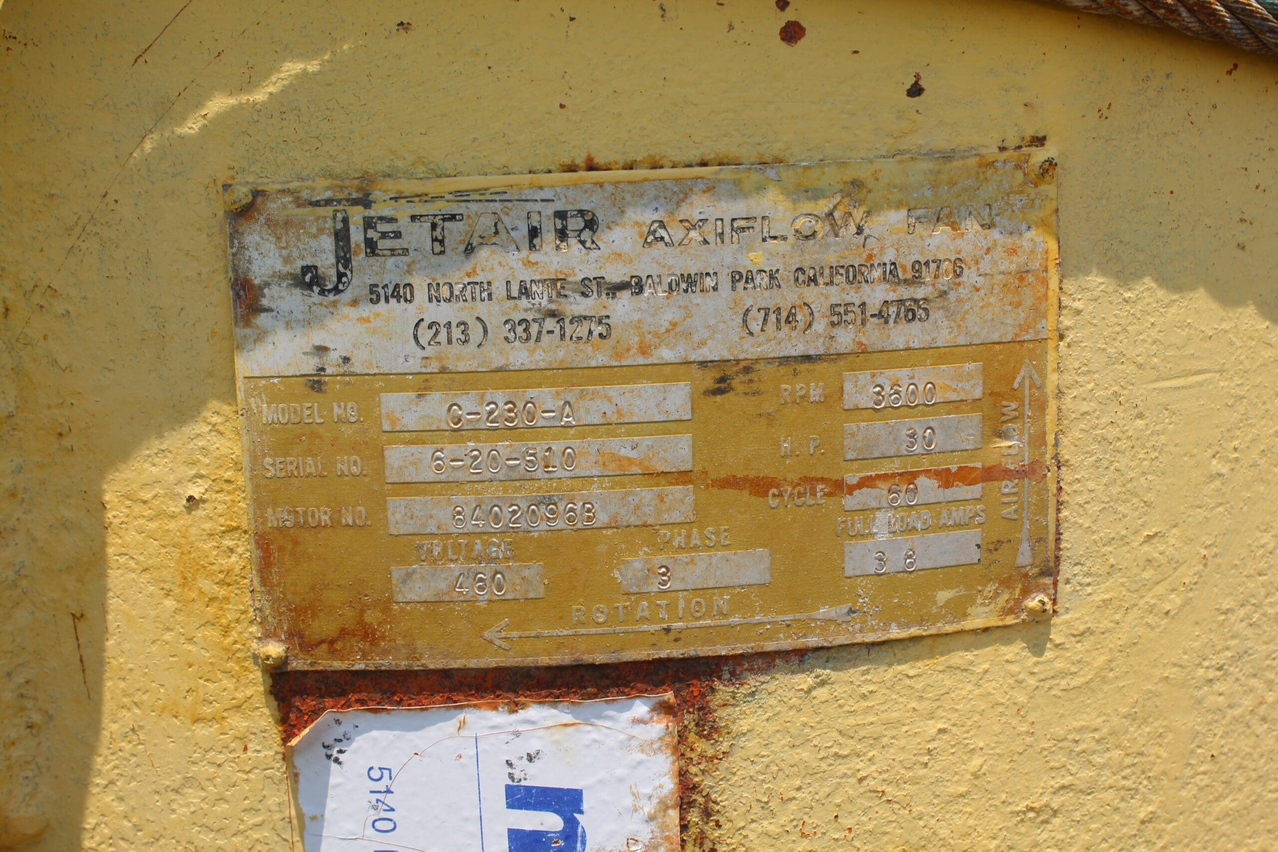 This fan was electrically tested and megged good.