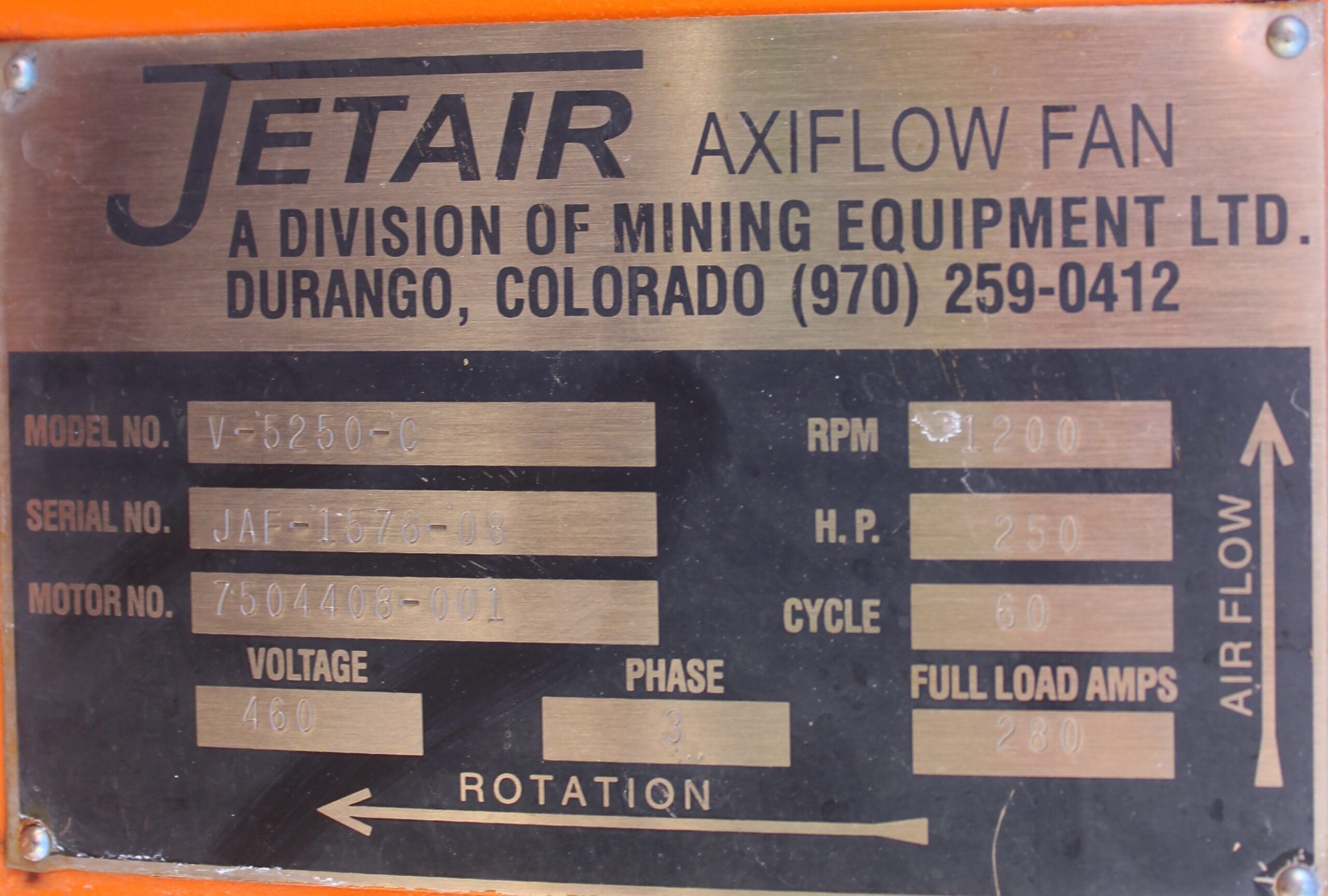 This fan has been electrically tested (Megger test) and is in good working condition.